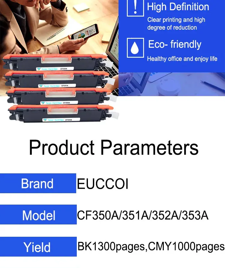 Home » Products » Toner Cartridge » EUCCOI 130A CF350A CF351A CF352A CF353A Color Toner Cartridge